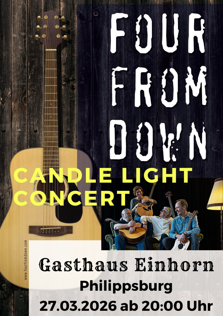 Lilia im Gasthaus zum Einhorn wird uns mit einer feinen Speisenauswahl ab 19 Uhr verwöhnen und den Saal stilvoll dekorieren. Natürlich mit ganz vielen Kerzen. Wir kommen mit Support an der Percussion und an den Vocals. Freut Euch auf neue Songs.